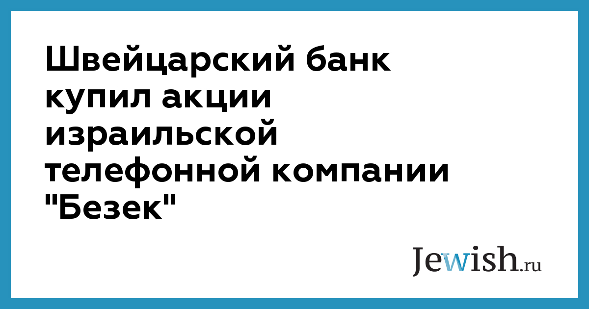 Швейцарский банк купил акции израильской телефонной компании "Безек"