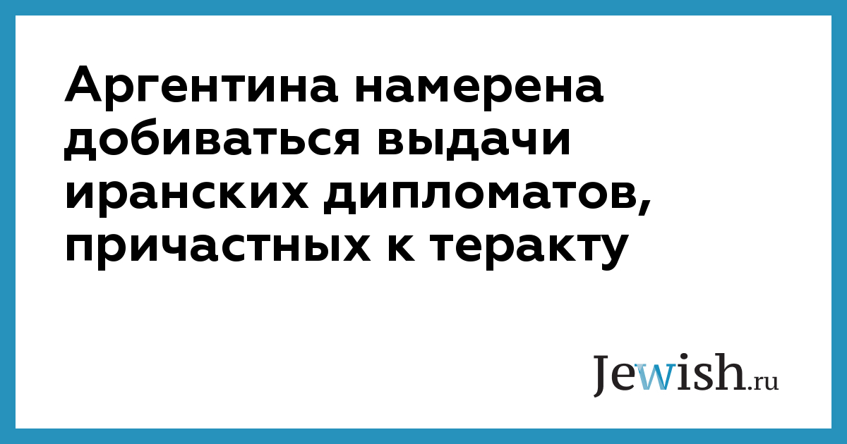 Аргентина обвиняет бывшего посла Ирана в Аргентине 47-летнего Хади Сулейманпура в причастности к гибели 85 человек у Еврейского центра в Буэнос-Айресе в результате июльского теракта 1994 года.