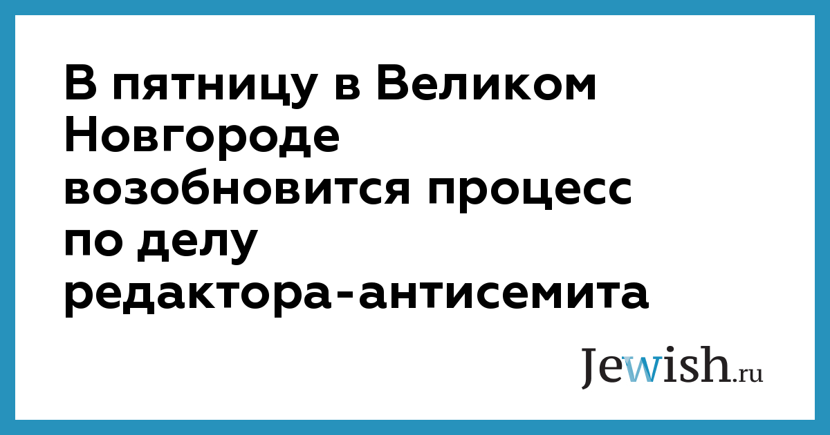 В пятницу в Великом Новгороде возобновится процесс по делу редактора-антисемита