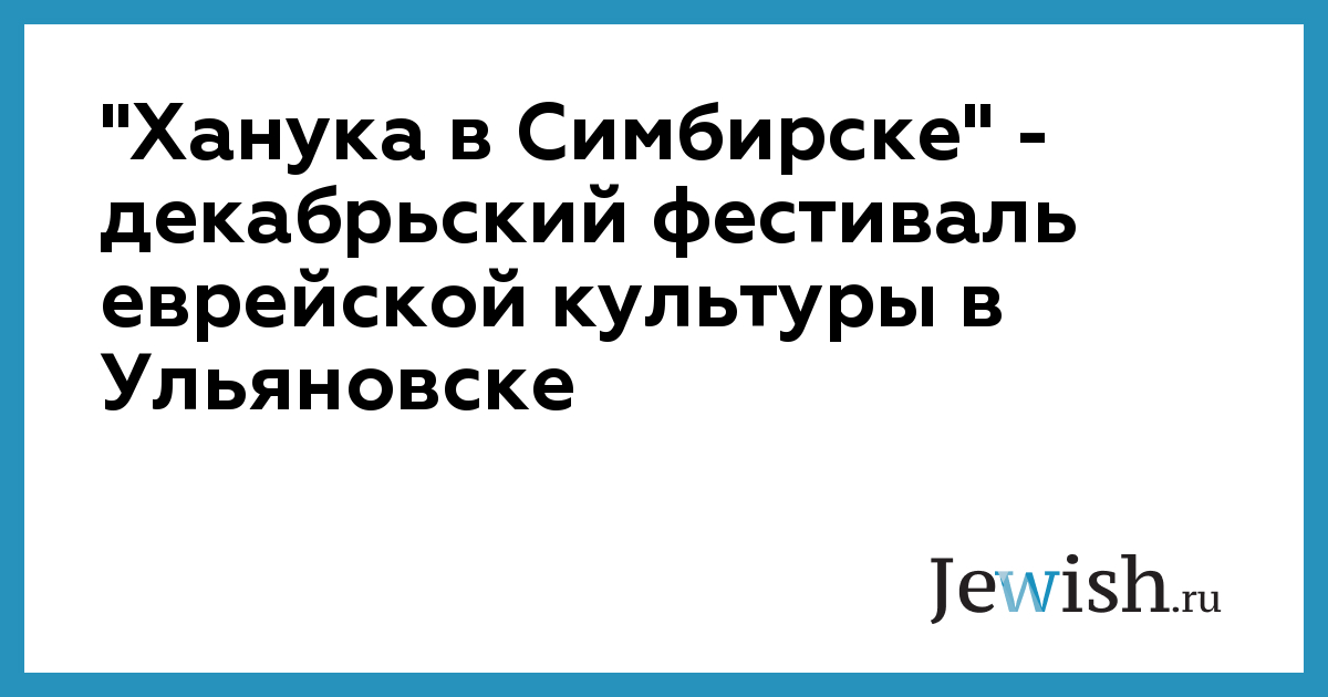 "Ханука в Симбирске" — декабрьский фестиваль еврейской культуры в Ульяновске