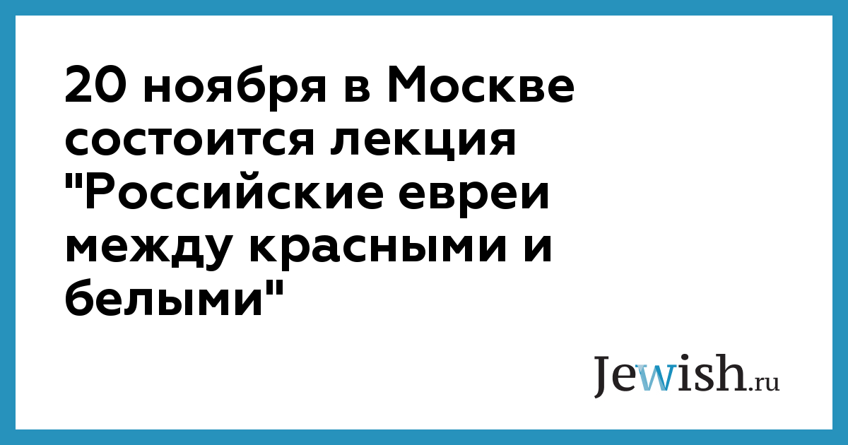 20 ноября в Москве состоится лекция "Российские евреи между красными и белыми"