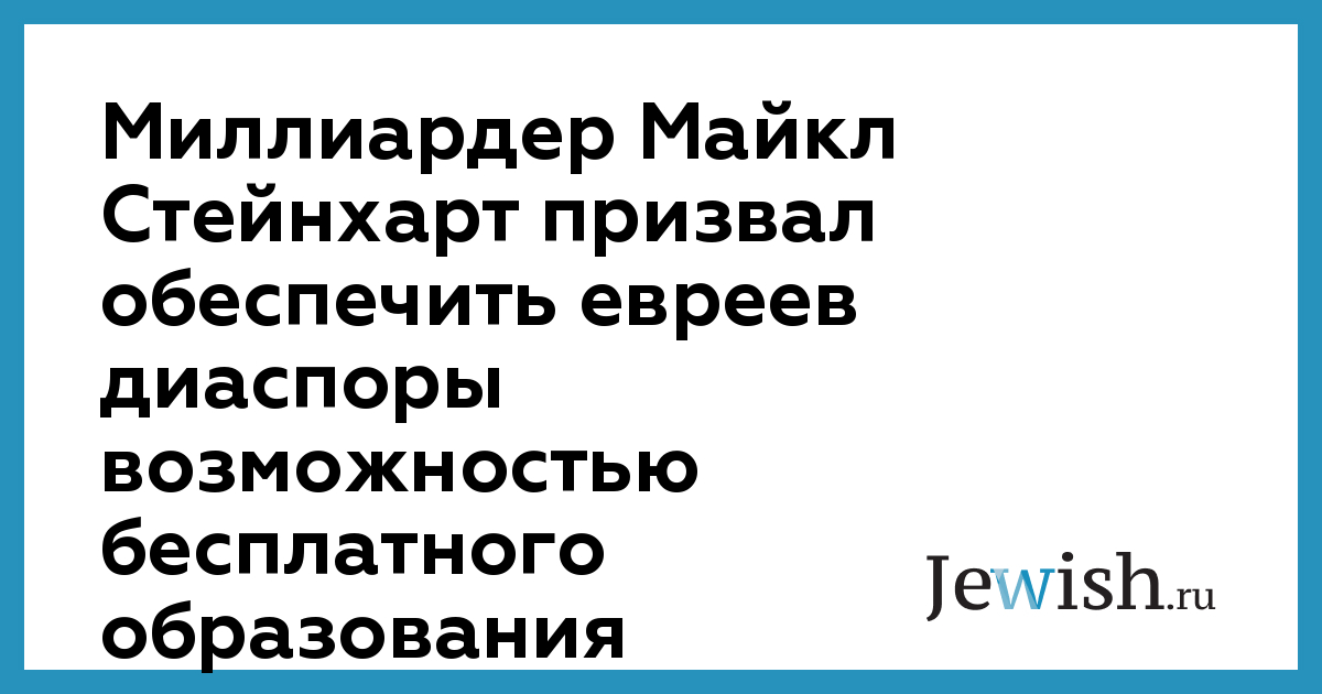 Миллиардер Майкл Стейнхарт призвал обеспечить евреев диаспоры возможностью бесплатного образования