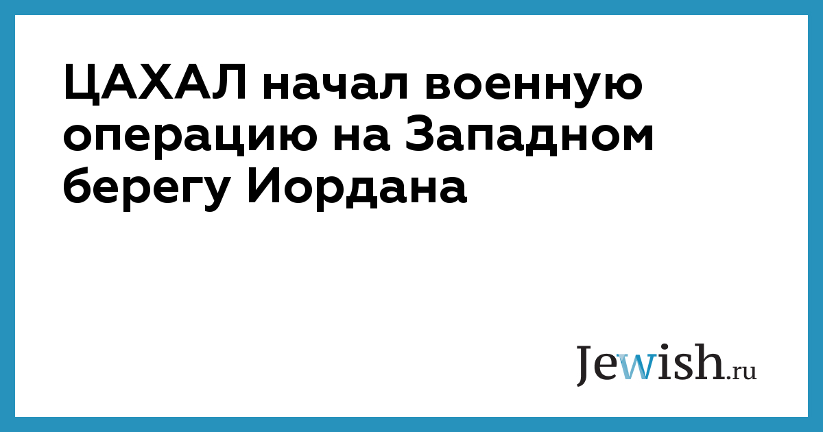 ЦАХАЛ начал военную операцию на Западном берегу Иордана