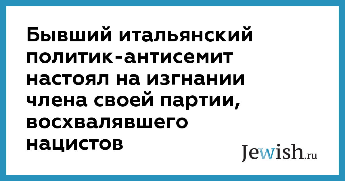 Бывший итальянский политик-антисемит настоял на изгнании члена своей партии, восхвалявшего нацистов