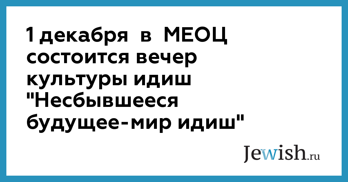 1 декабря в МЕОЦ состоится вечер культуры идиш "Несбывшееся будущее-мир идиш"