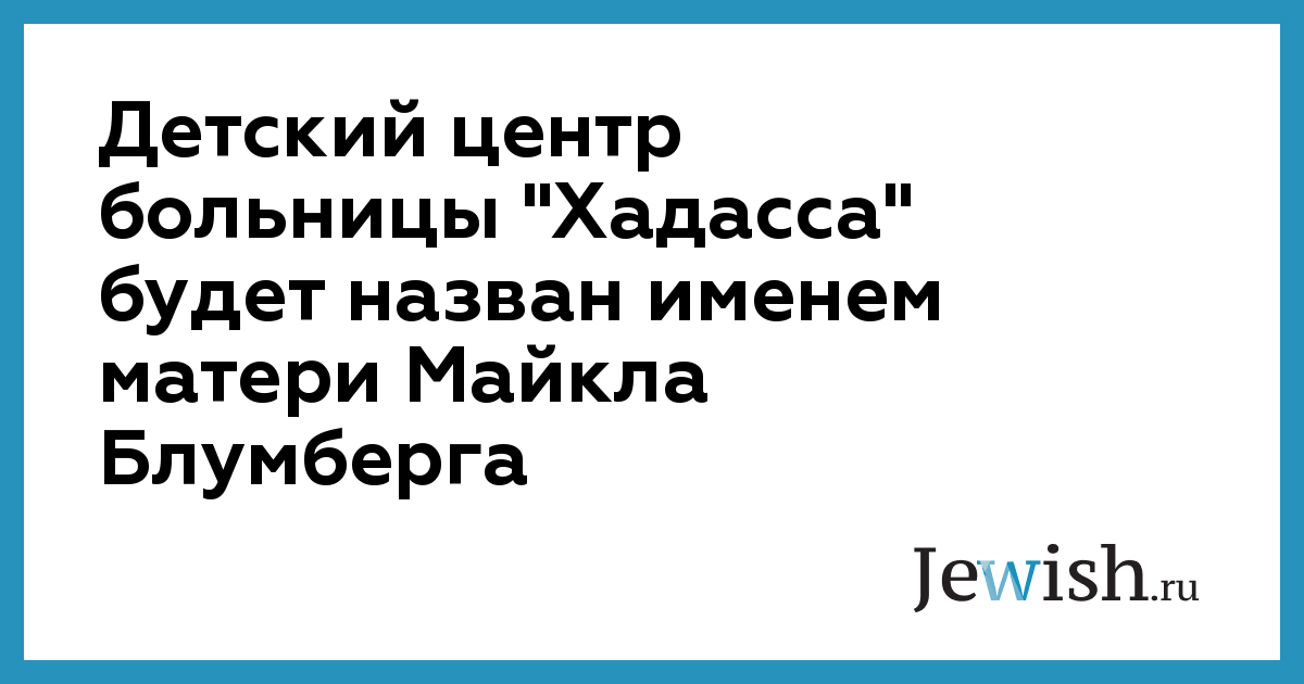 Детский центр больницы "Хадасса" будет назван именем матери Майкла Блумберга