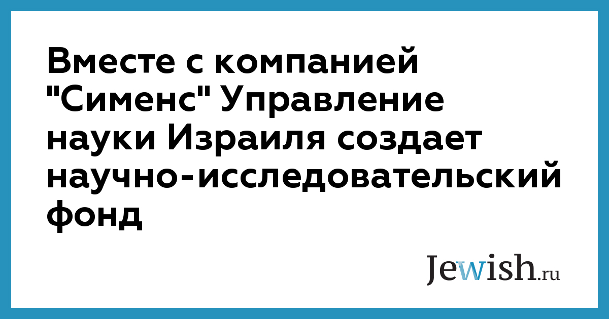 Вместе с компанией "Сименс" Управление науки Израиля создает научно-исследовательский фонд