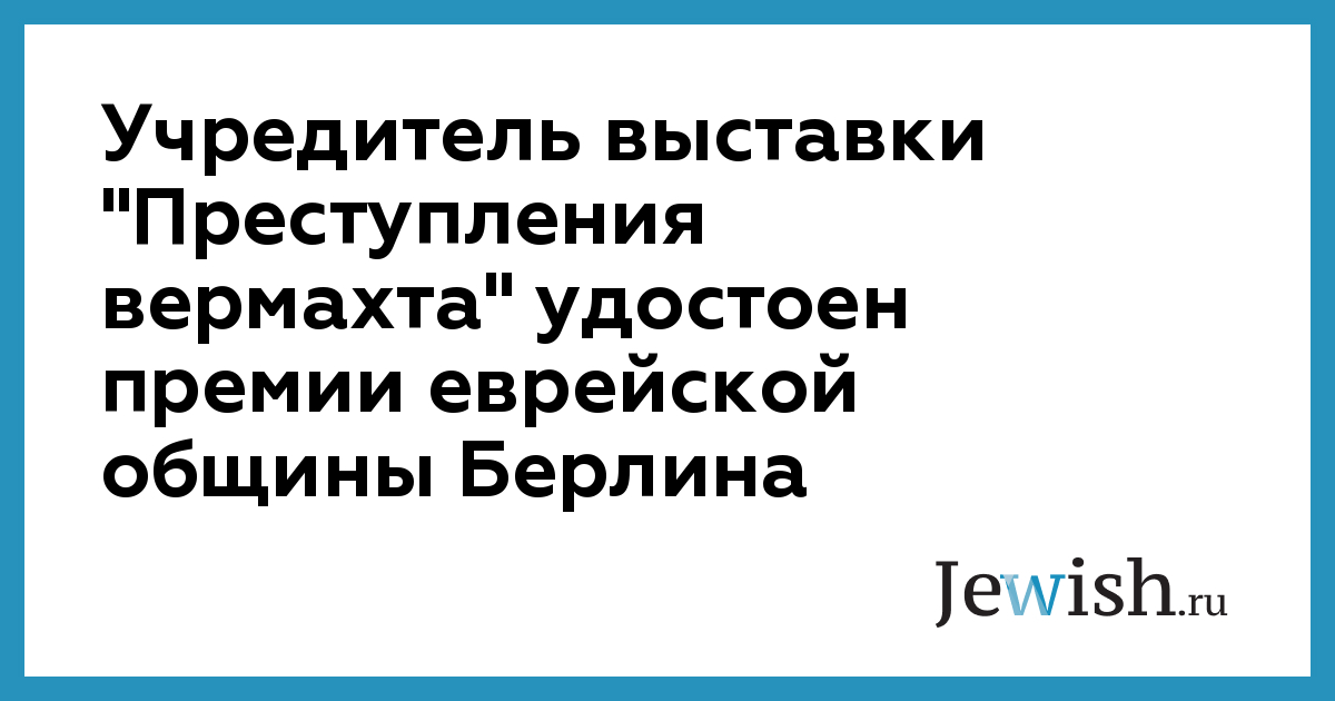 Учредитель выставки "Преступления вермахта" удостоен премии еврейской общины Берлина