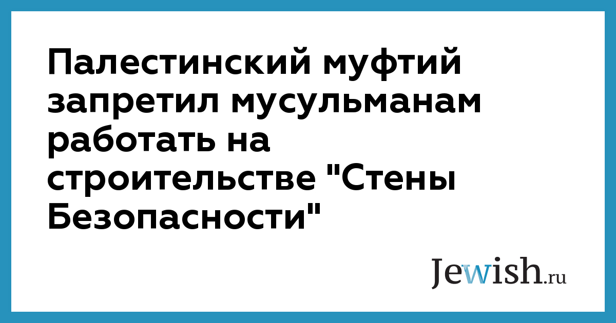 Палестинский муфтий запретил мусульманам работать на строительстве "Стены Безопасности"