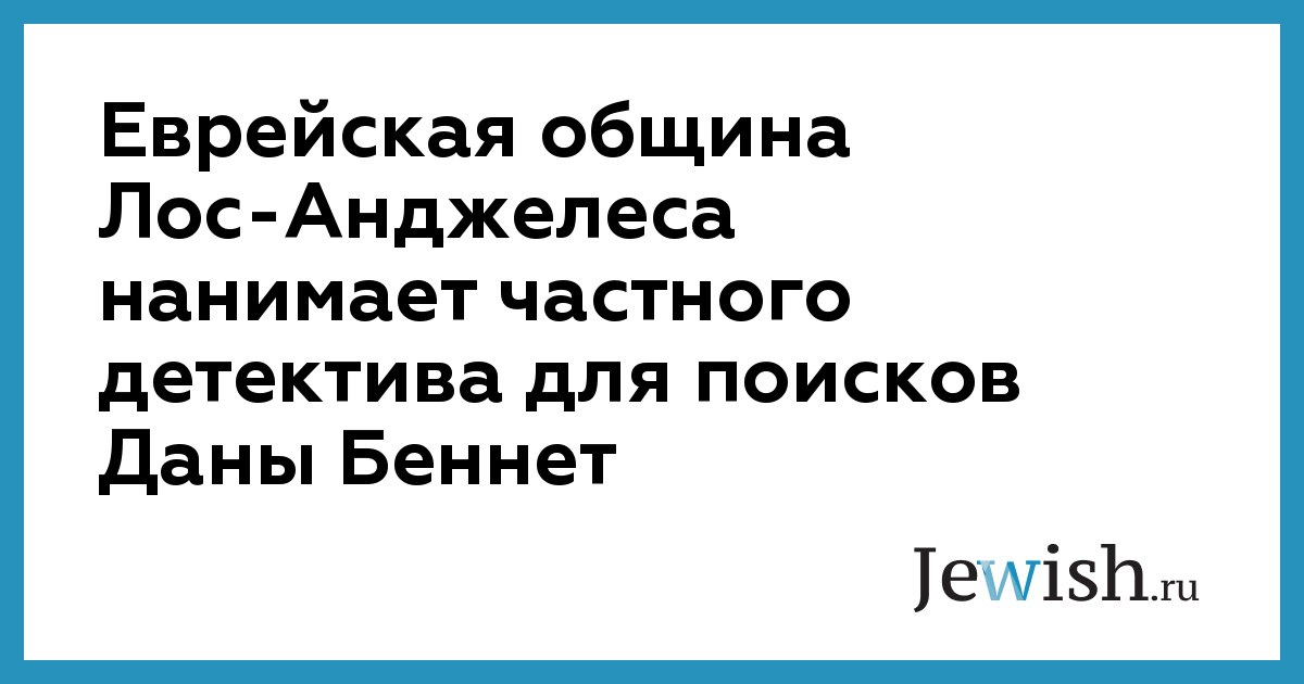 Еврейская община Лос-Анджелеса нанимает частного детектива для поисков Даны Беннет