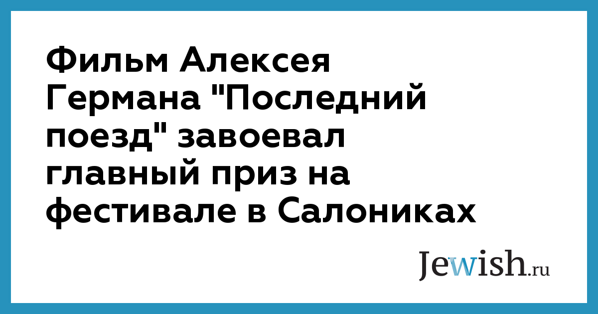 Фильм Алексея Германа "Последний поезд" завоевал главный приз на фестивале в Салониках