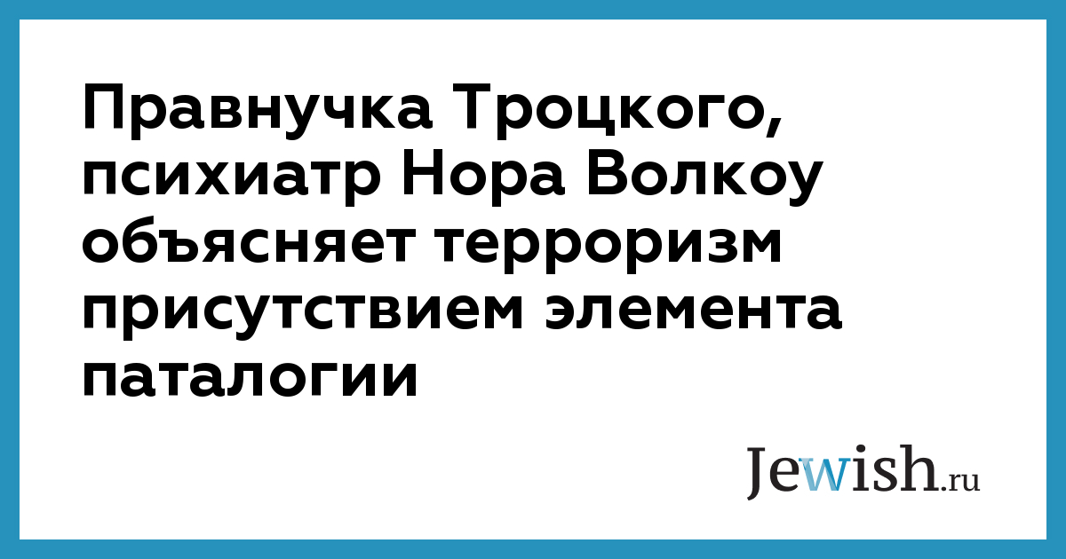Правнучка Троцкого, психиатр Нора Волкоу объясняет терроризм присутствием элемента паталогии