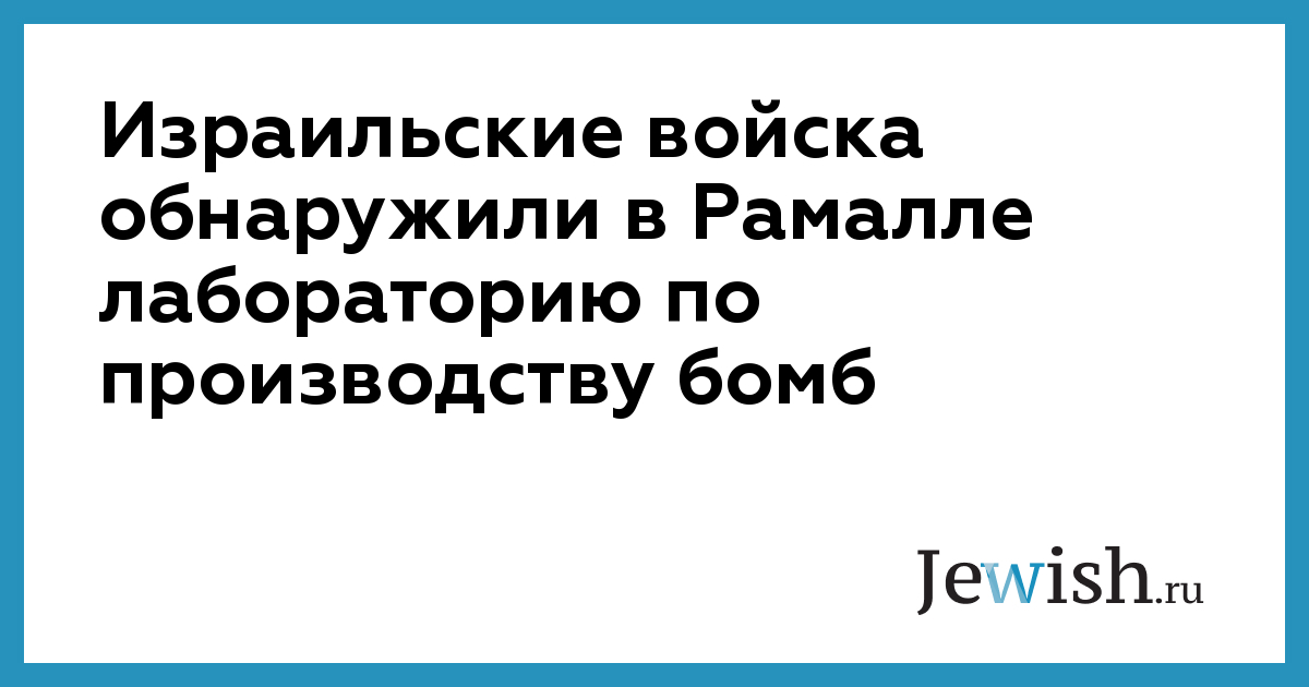 Израильские войска обнаружили в Рамалле лабораторию по производству бомб