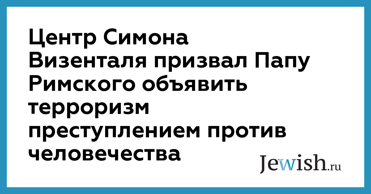 Центр Симона Визенталя призвал Папу Римского объявить терроризм преступлением против человечества