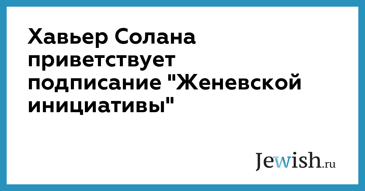 Хавьер Солана приветствует подписание "Женевской инициативы"