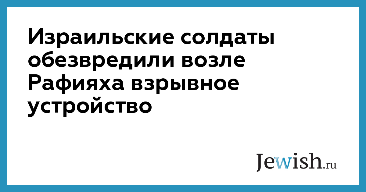 Израильские солдаты обезвредили возле Рафияха взрывное устройство