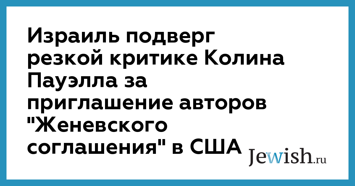 Израиль подверг резкой критике Колина Пауэлла за приглашение авторов "Женевского соглашения" в США