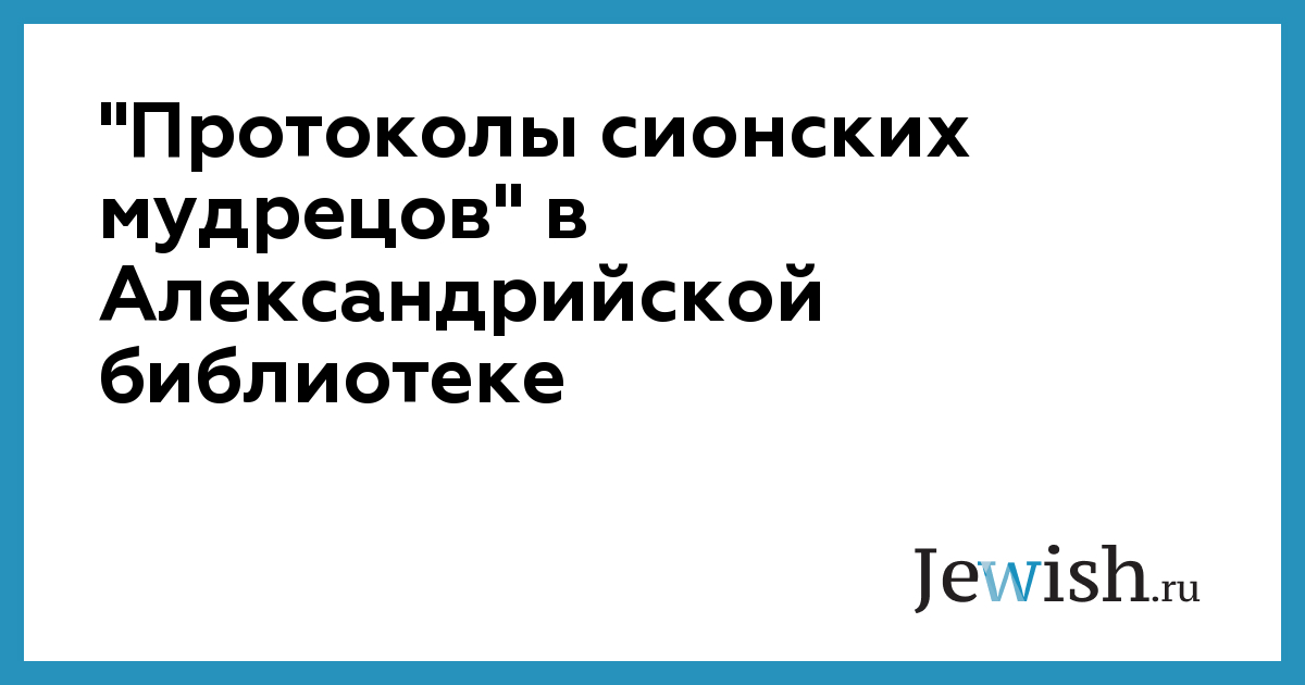 "Протоколы сионских мудрецов" в Александрийской библиотеке