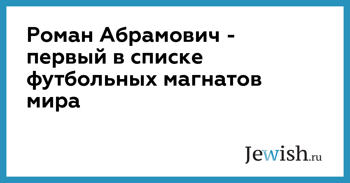 Роман Абрамович — первый в списке футбольных магнатов мира