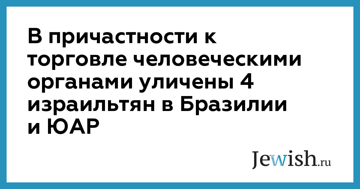 В причастности к торговле человеческими органами уличены 4 израильтян в Бразилии и ЮАР
