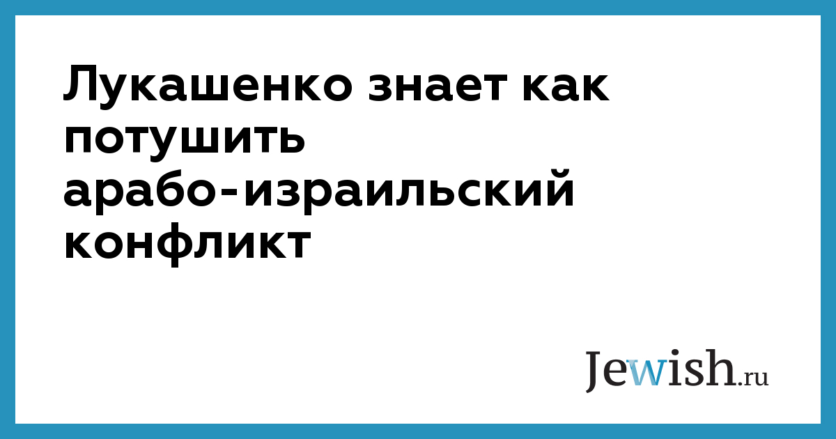 Президент Белоруссии видит «исключительно мирное» решение арабо-израильской проблемы на основании уже принятых резолюций ООН. По словам Лукашенко, «есть хорошее решение ООН, и надо, чтобы израильтяне, прежде всего, его выполнили». «Израилю и Палестине надо понимать: коль уж так определено, что им жить по соседству, надо решать эти вопросы по-человечески», — сказал белорусский лидер. Он считает, что если Израилю «мало земли», и он хочет создать поселения на территории, не оговоренной ООН, то он должен понимать, что там люди не смогут жить. «Это будут сплошные военные действия, конфликт может приобрести необратимый характер, — уверен Лукашенко. — Это будет кошмар для всего арабского мира и его соседей».