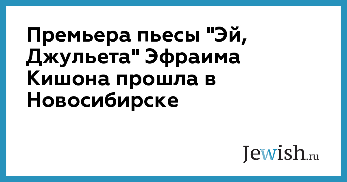 Премьера пьесы "Эй, Джульета" Эфраима Кишона прошла в Новосибирске