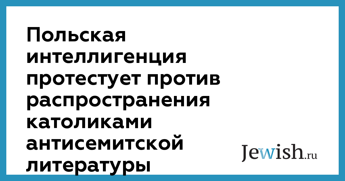 Польская интеллигенция протестует против распространения католиками антисемитской литературы