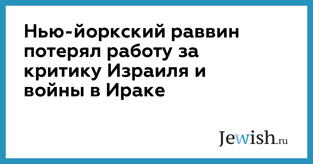 Нью-йоркский раввин потерял работу за критику Израиля и войны в Ираке