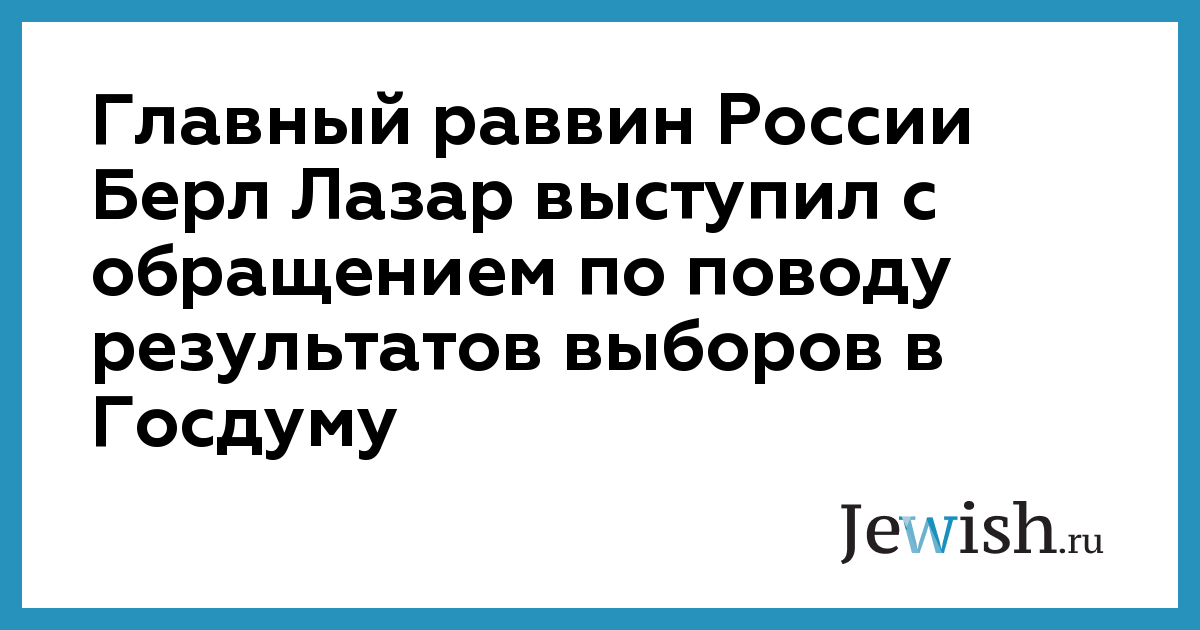Главный раввин России Берл Лазар выступил с обращением по поводу результатов выборов в Госдуму