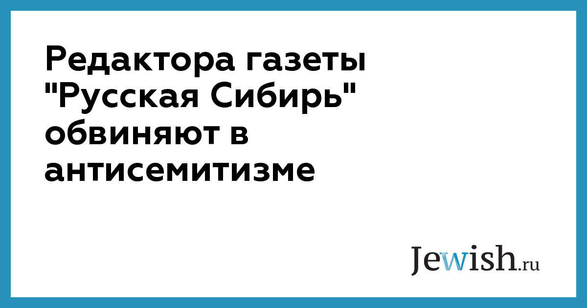 Редактора газеты "Русская Сибирь" обвиняют в антисемитизме