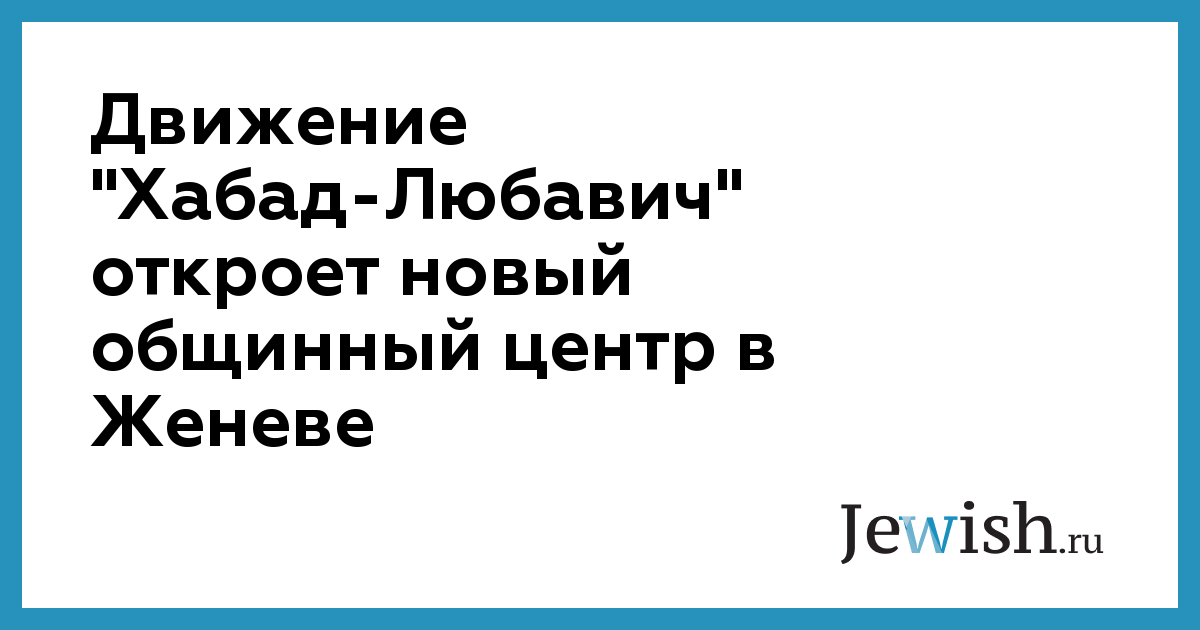Движение "Хабад-Любавич" откроет новый общинный центр в Женеве