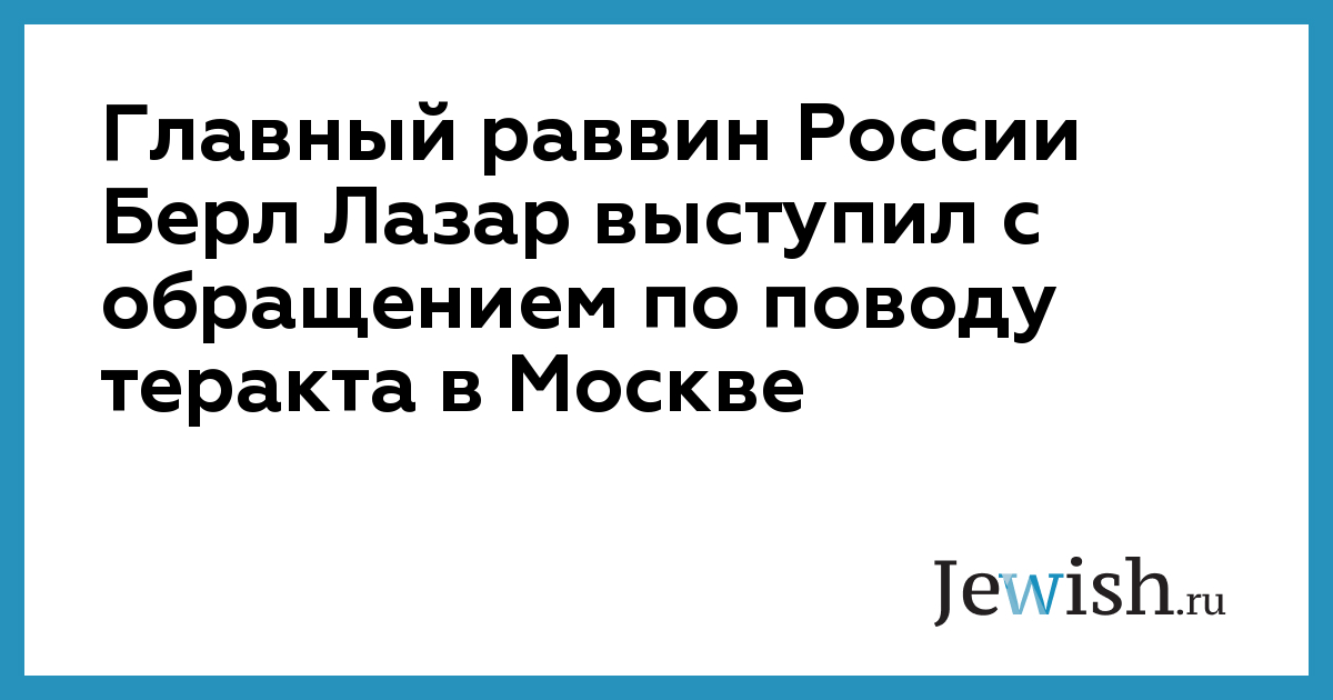 Главный раввин России Берл Лазар выступил с обращением по поводу теракта в Москве