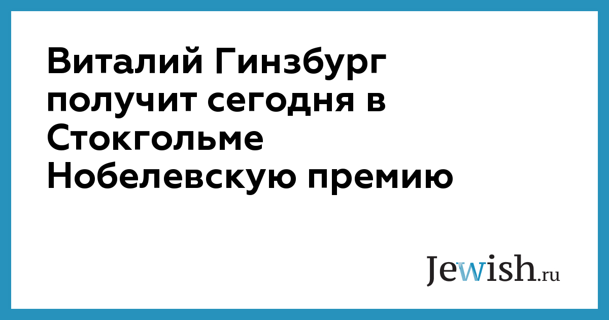 Виталий Гинзбург получит сегодня в Стокгольме Нобелевскую премию