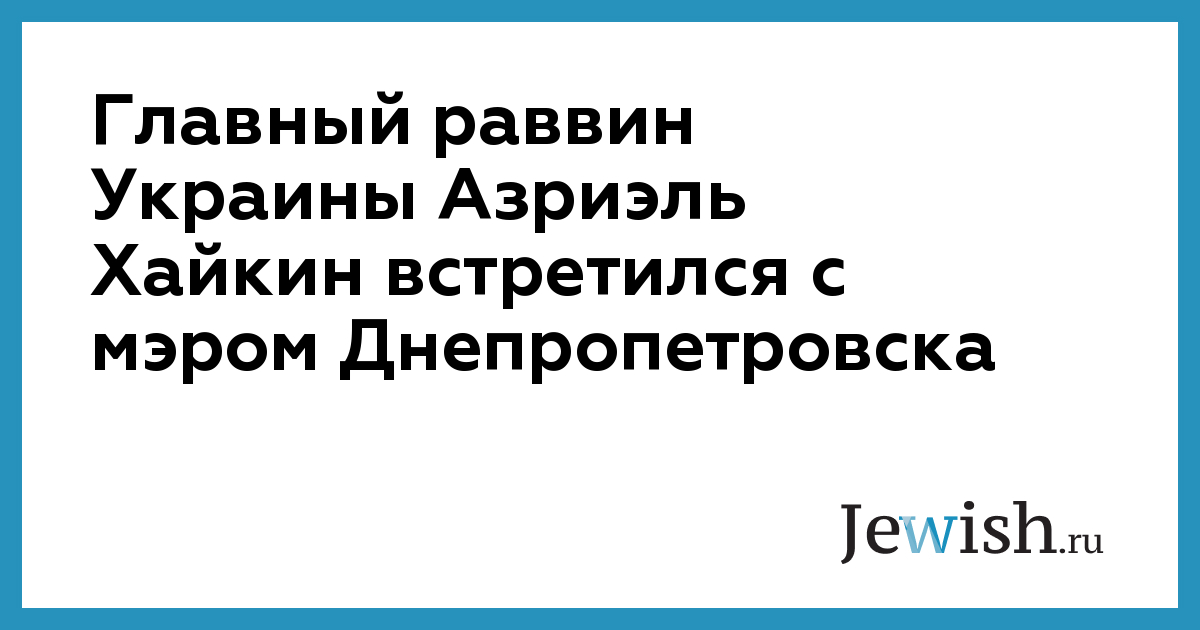Главный раввин Украины Азриэль Хайкин встретился с мэром Днепропетровска