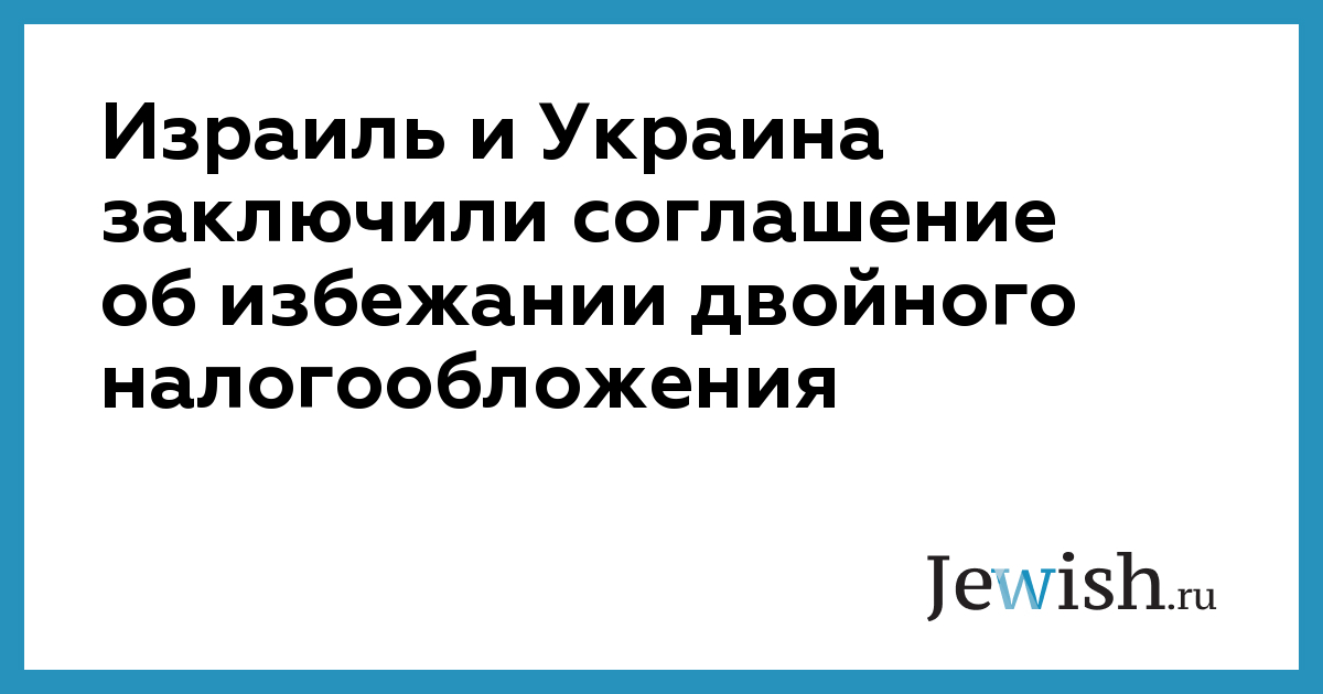 Израиль и Украина заключили соглашение об избежании двойного налогообложения