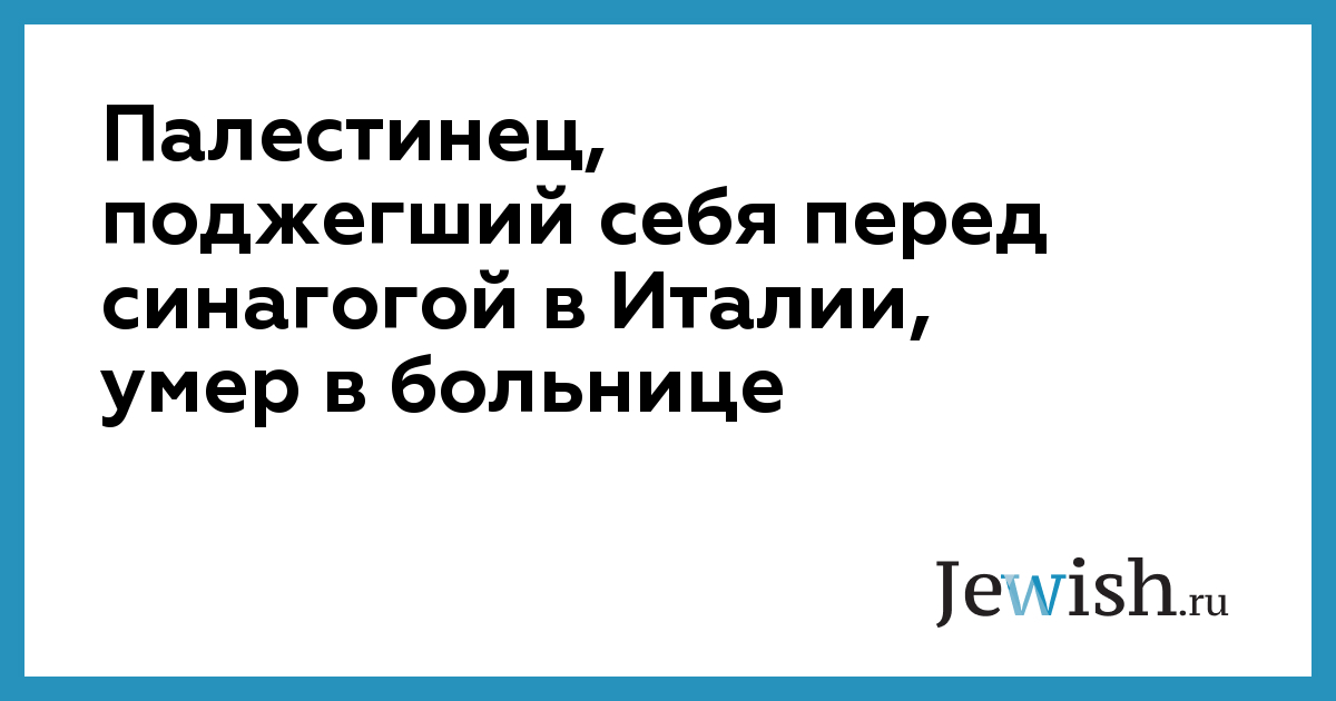 Палестинец, поджегший себя перед синагогой в Италии, умер в больнице