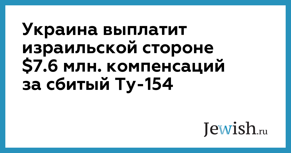 Украина выплатит израильской стороне $7.6 млн. компенсаций за сбитый Ту-154