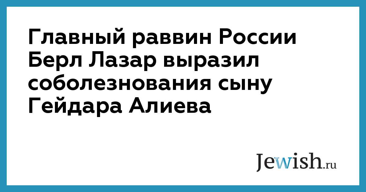 "Примите мои самые глубокие и искренние соболезнования в связи со смертью Вашего отца, Гейдара Алиевича Алиева. Разделяю Ваше горе, соболезную родным, близким и всему азербайджанскому народу в связи с этой горькой и непоправимой утратой, скорблю вместе с Вами и молюсь", — говорится в послании, которое Берл Лазар направил сыну Г.Алиева — нынешнему главе Азербайджана Ильхаму Алиеву.