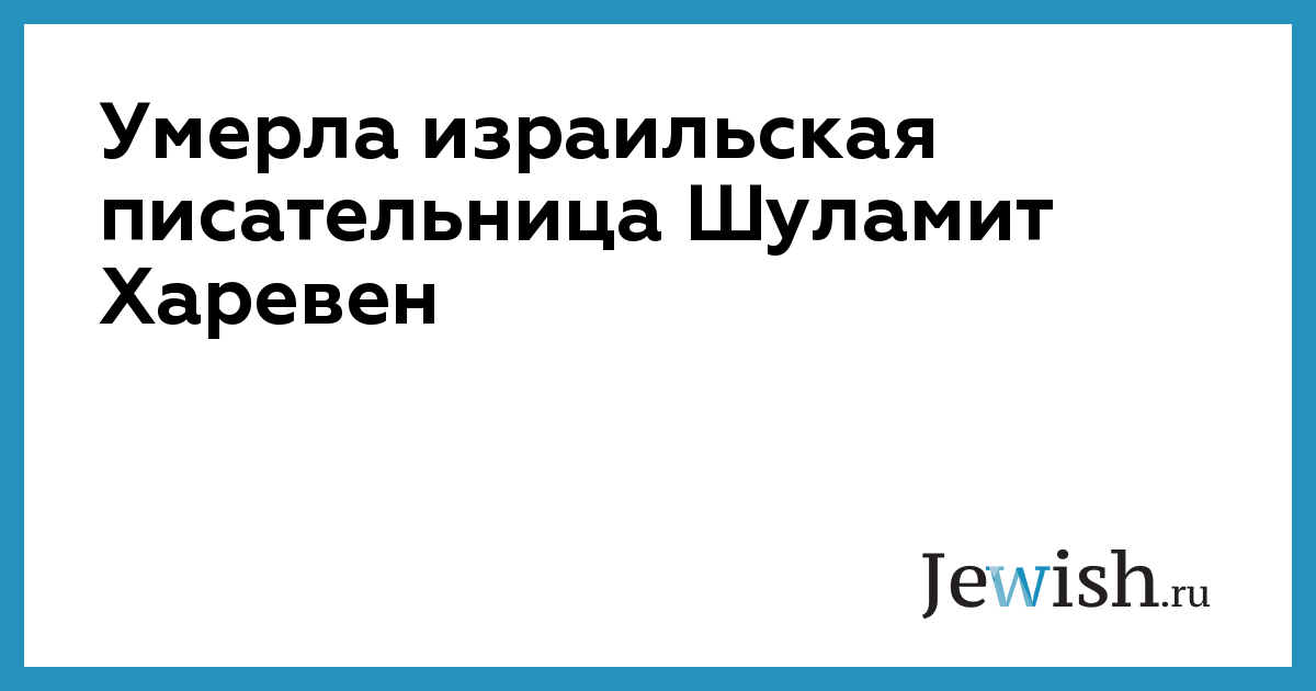 Умерла израильская писательница Шуламит Харевен