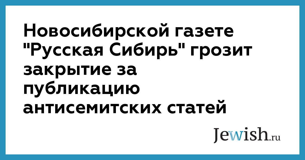 Новосибирской газете "Русская Сибирь" грозит закрытие за публикацию антисемитских статей