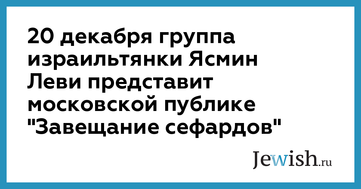 20 декабря группа израильтянки Ясмин Леви представит московской публике "Завещание сефардов"