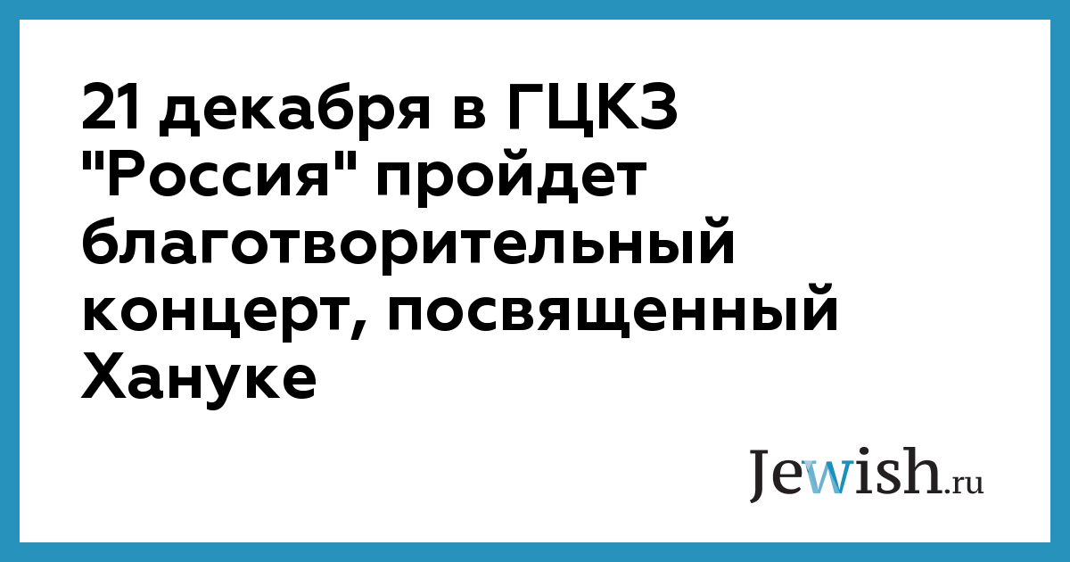 21 декабря в ГЦКЗ "Россия" пройдет благотворительный концерт, посвященный Хануке