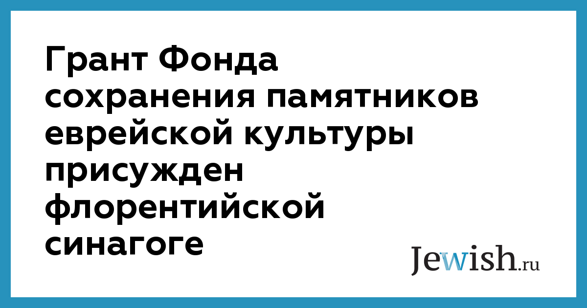 Грант Фонда сохранения памятников еврейской культуры присужден флорентийской синагоге
