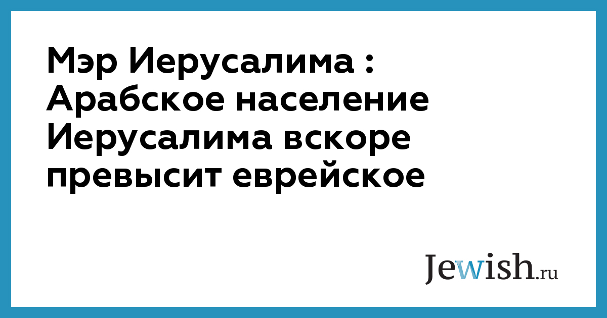 Мэр Иерусалима : Арабское население Иерусалима вскоре превысит еврейское