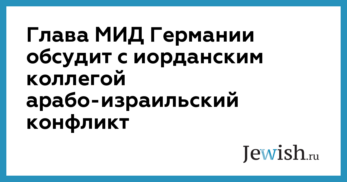 Глава МИД Германии обсудит с иорданским коллегой арабо-израильский конфликт
