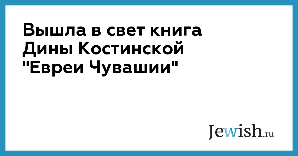 Вышла в свет книга Дины Костинской "Евреи Чувашии"