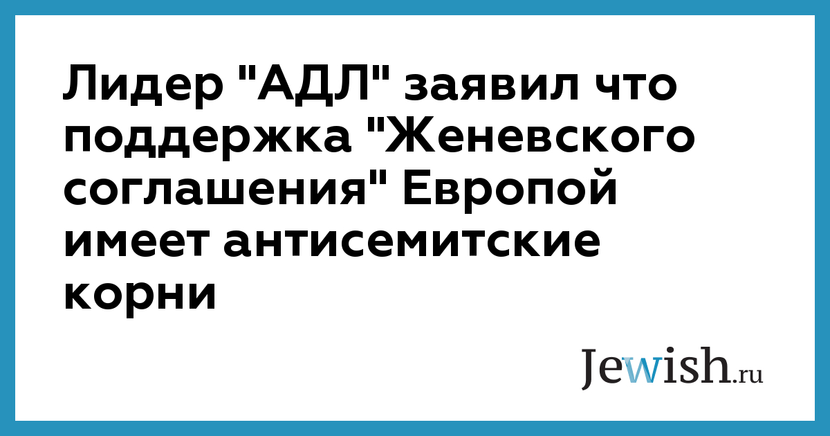Лидер "АДЛ" заявил что поддержка "Женевского соглашения" Европой имеет антисемитские корни