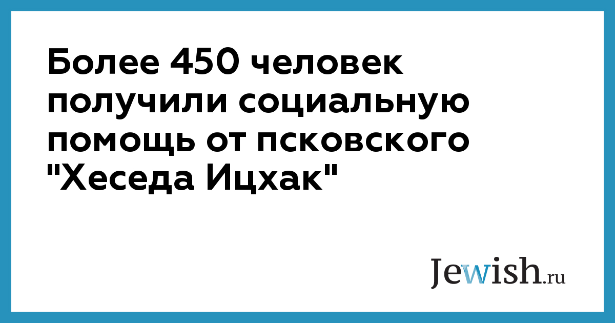 Более 450 человек получили социальную помощь от псковского "Хеседа Ицхак"
