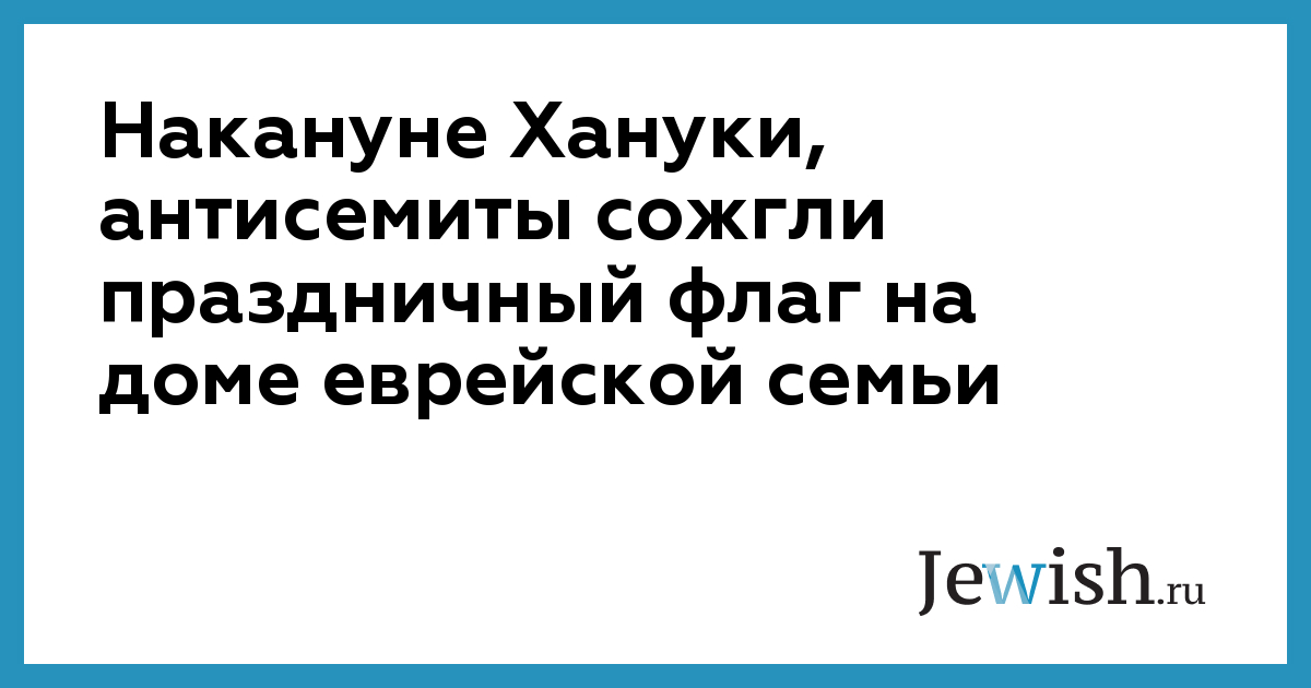 Накануне Хануки, антисемиты сожгли праздничный флаг на доме еврейской семьи