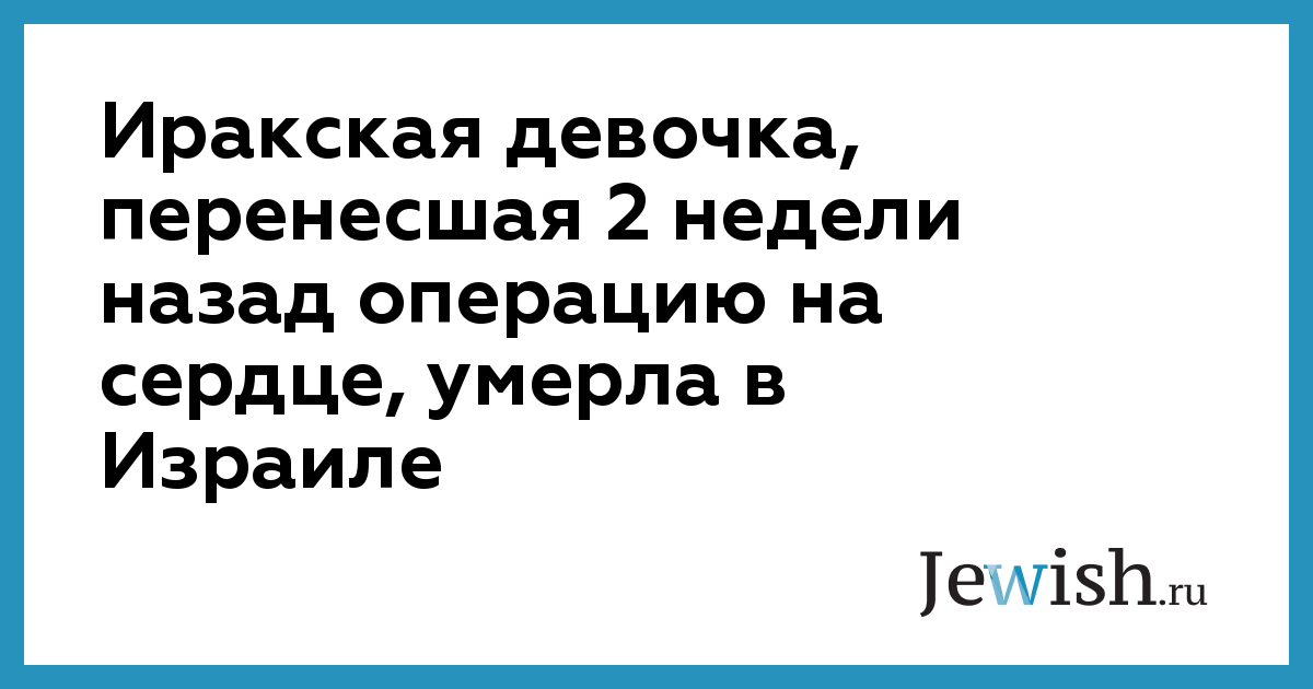 Иракская девочка, перенесшая 2 недели назад операцию на сердце, умерла в Израиле